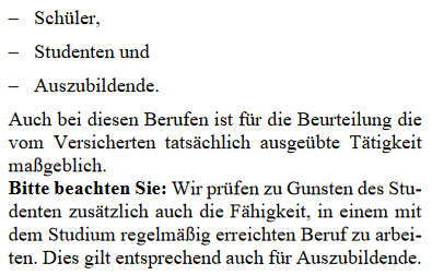 Viele Versicherer weichen von dieser Definition zugunsten der Versicherten ab, wie das folgende Beispiel der HDI Lebensversicherung AG zeigt: