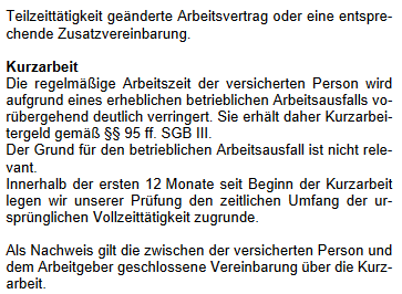 Da allerdings die versicherte Person Nachweise über die jeweiligen Arbeitszeiten vorlegen muss, erscheint mir diese Teilzeitklausel für Selbstständige / Freiberufler problematisch.
